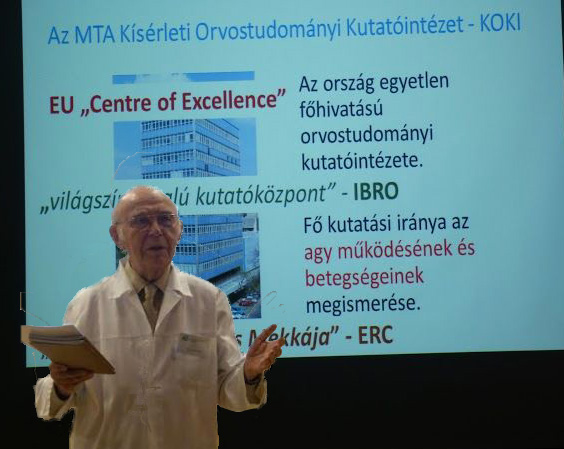 Knowing only this much about Dr. Dezső Szabó's achievements to date, we can only agree that in 1963, the organizers of the Institute of Experimental Medicine, which was still under construction at the time, approached him and asked him to take on the organization and management of the electron microscope laboratory to be established at the new institute. He organized the installation of the first electron microscope here and has been following the development of microscopy ever since. In addition to teaching generations of microscopists, until the outbreak of the Covid pandemic, he was the main organizer of the Hungarian Science Festival lecture series at our place, selected our speakers. After their arrival, the accompanying teachers of the students, whether they came from the countryside or Budapest, always asked him first.