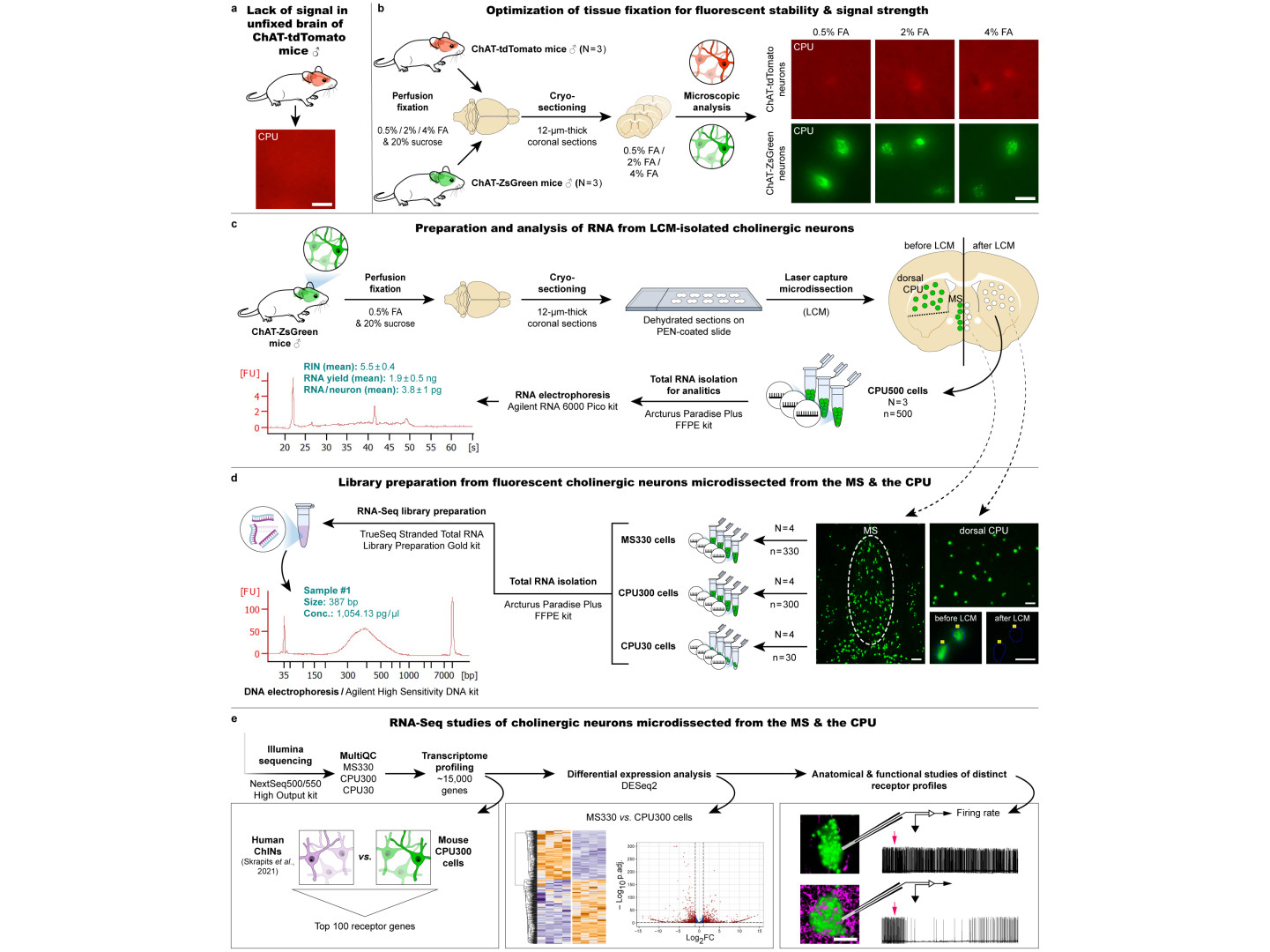 - Preservation of fluorescent signals requires tissue fixation with formalin, while for next-generation sequencing, unfixed tissues provide the best preservation of RNA for cDNA library construction. Tests were conducted to select the optimal fluorescent marker, the concentration of formalin, the ideal number of neurons to be isolated, and the technologies and commercially available kits for RNA isolation and library preparation. Balázs Göcz and Szabolcs Takács have also gained considerable bioinformatics skills during their work, which will facilitate future transcriptomics projects based on similar principles in our laboratory.