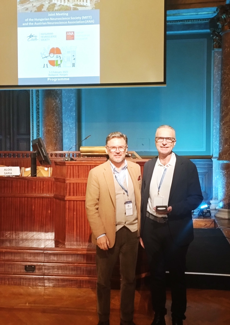 Egy kivételes kitüntetés is kiosztára került. Az osztrák idegtudomány úttörője díjat Prof. Dr. Alois Saria kapta az idegtudományok terén tanúsított egész életen át tartó elkötelezettsége és kiemelkedő hozzájárulása elismeréseként. Mindkét kitüntetettnek gratulálunk!