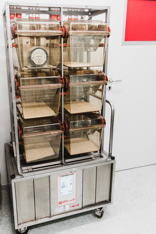 Állattartás is folyik mindkét egységben. Az egér- és patkánytartó terekben jól jellemezhető ágensekkel involvált laborállatok (ABSL-1) és az emberi megbetegedést okozó, de mérsékelten veszélyes fertőzést jelentő laborállatok (ABSL-2) tarthatók a biztonságos állattartás körülményeit leíró a 2009/41/EK irányelv V. fejezetének direktíváit követve.