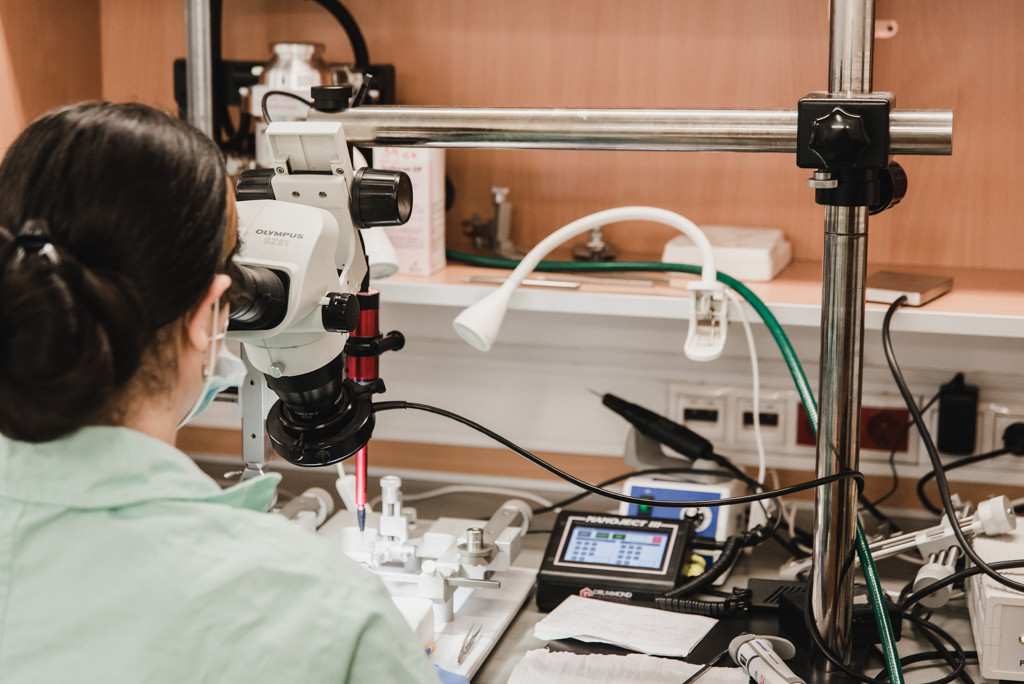 Az rAAV laboratóriumban elsősorban BSL1 kategóriájú immunkompetens személyek számára veszélytelen, jól leírt ágensekkel, 4 munkaállomáson zajlik a munka. Elsősorban nanoinjektálásra, optikai szál és elektród implantálásra van itt lehetőség.