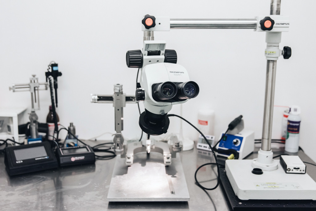 In the rAAV laboratory, work is carried out mainly with well-described agents that are non-hazardous to immunocompetent persons of BSL1 category, at 4 workstations. It is mainly used for nanoinjection, optical fibre and electrode implantation.