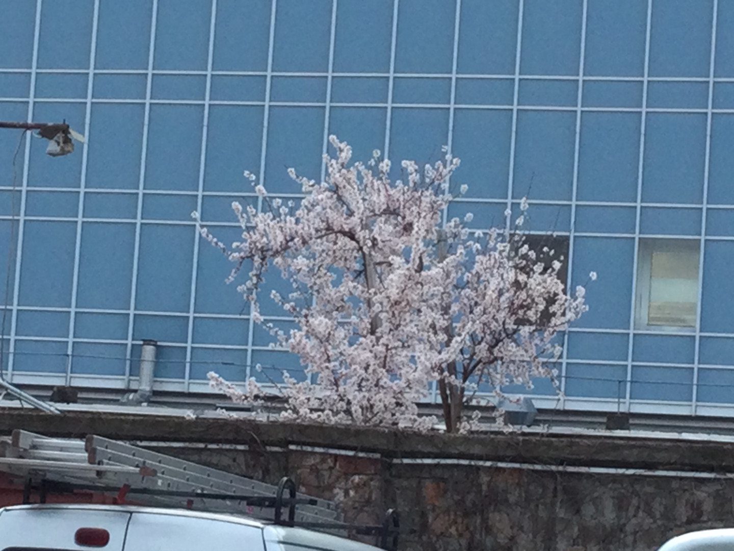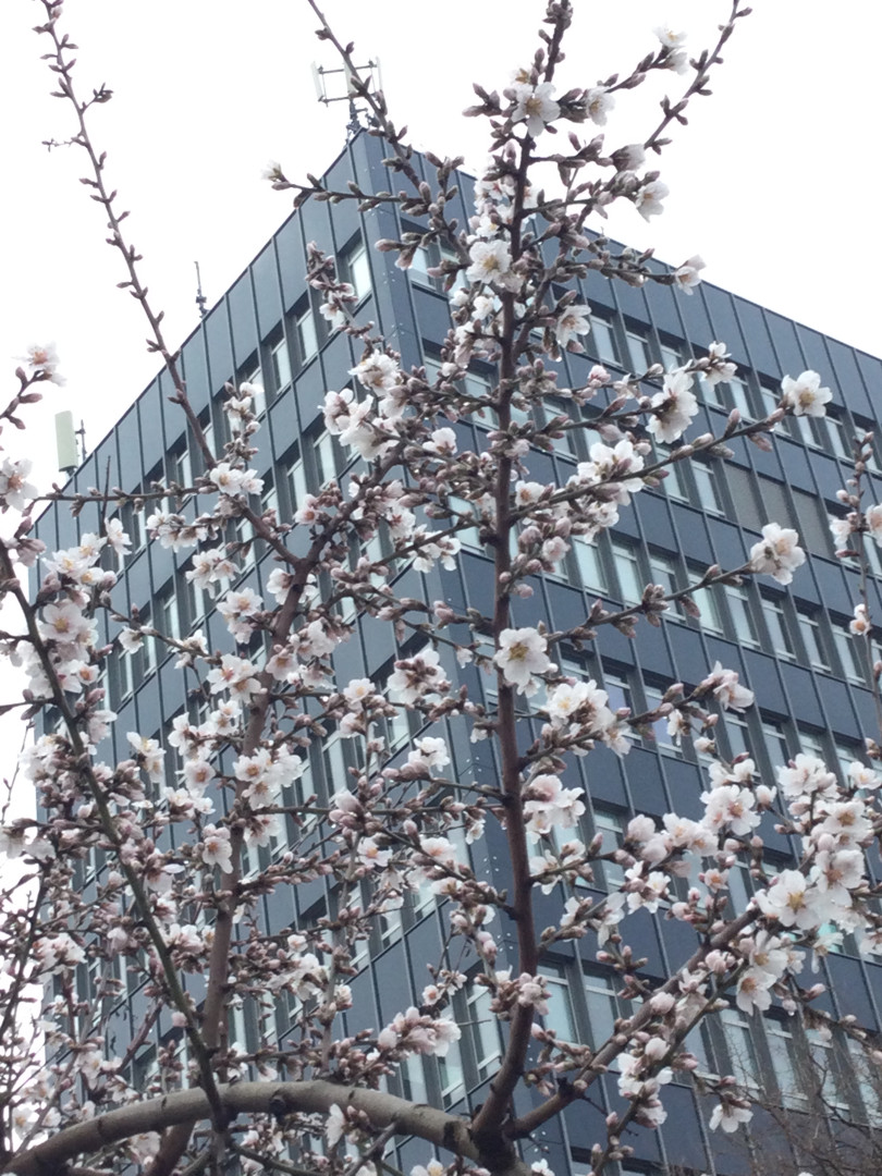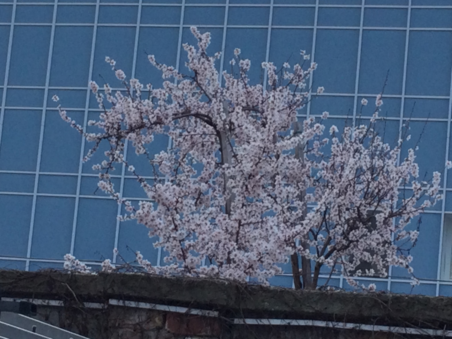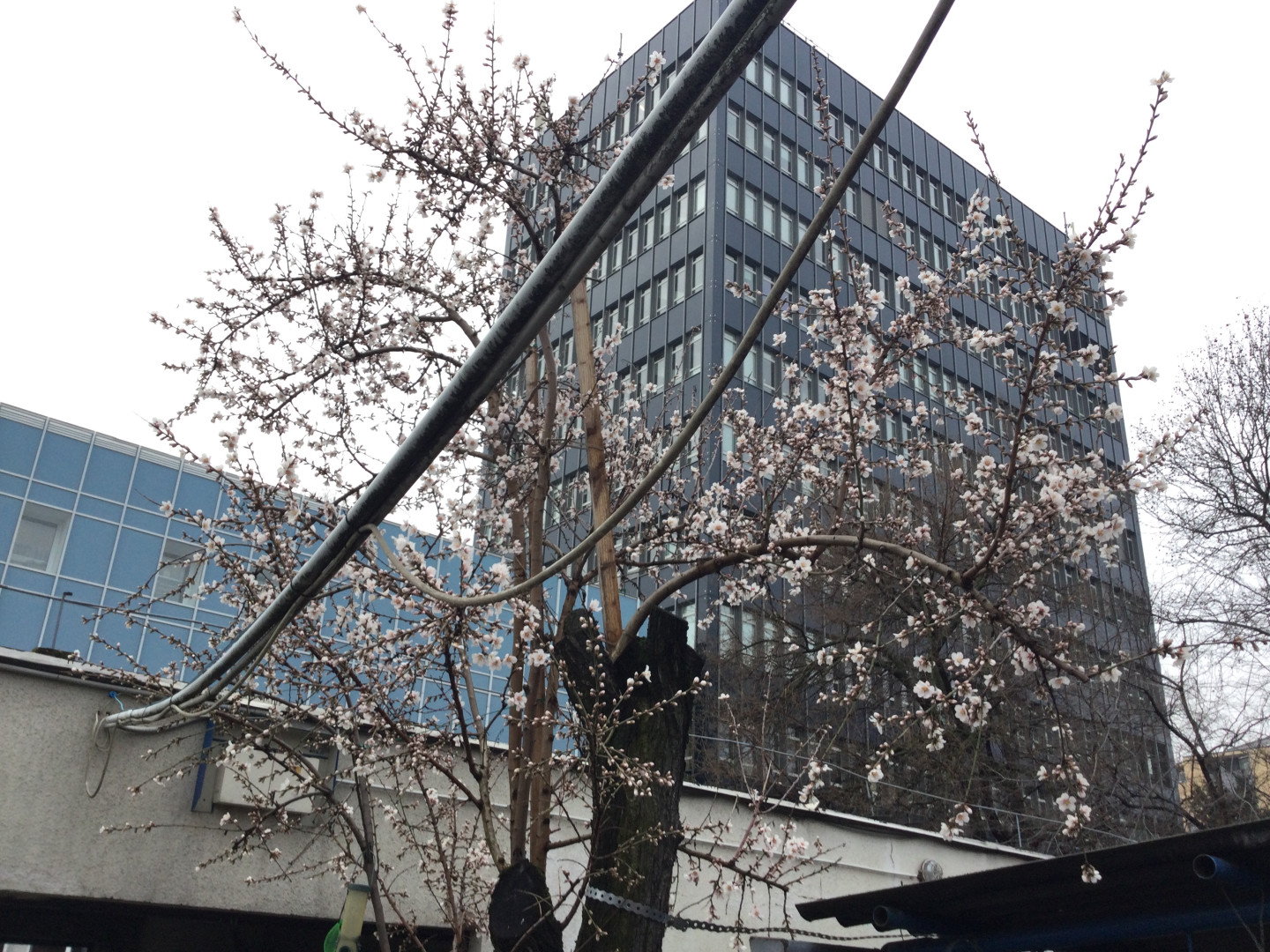 Két napja már a parkoló végéből virágzó öreg fánk képe fogadott mindenkit, bár az első érkezők a kapun belül rügyeket és virágokat sajnos a betonon is láthattak egy szürkevarjú érthetetlen ellenszenve miatt, dühét azóta csillapíthatta, mert már a fa melletti tető mohás földjének leszórásával is alábbhagyott.