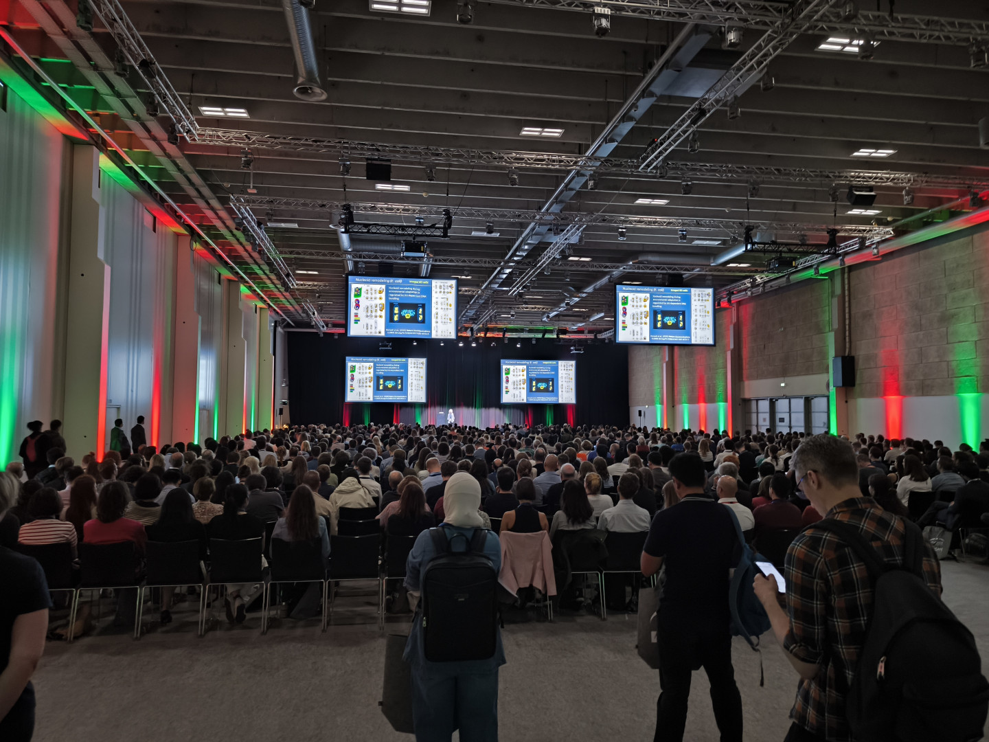 Kiváló volt a konferencia helyszíne, a mind a repülőtér, mind a városközpont felől könnyen megközelíthető Bella Center. Bár egyszerre két konferencia is zajlott, a résztvevők még véletlenül sem zavarták egymást. Az emc 2500 regisztrált résztvevője sose érezhette, se tömegben, se elveszettnek magát. A plenáris előadásokra ott volt az akár minden résztvevőt befogadó nagyterem, az öt párhuzamos szekcióra a 3-500 fős hallgatóságra tervezett termek, melyekbe egy nagy hallból lehetett belépni, ahol elfértek a cégek kiállítóhelyei, a poszterek, a jeges vizet-forró teát/kávét és finom magkeveréket egész nap kínáló asztalok, és még több pihenősziget is, ahol babzsákokra ülve lehetett eszegetni is, a programot olvasgatni, de még inkább beszélgetni, ismerkedni a máshonnan érkezett mikroszkópos kollégákkal.