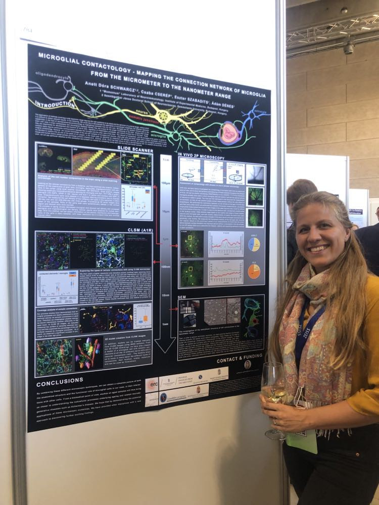 - Igen, a Magyar Mikroszkópos Társaság idei konferenciáján bemutatott előadást formáltam poszterré, és bővítettem ki újabb eredményeimmel. Eddigi tapasztalataimtól eltérő és igen izgalmas volt, hogy főként módszertani kérdéseket és tanácsokat kaptam.