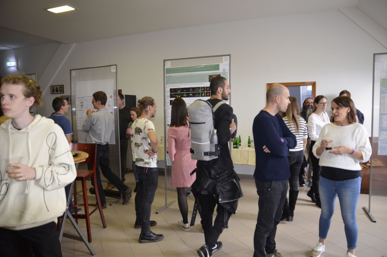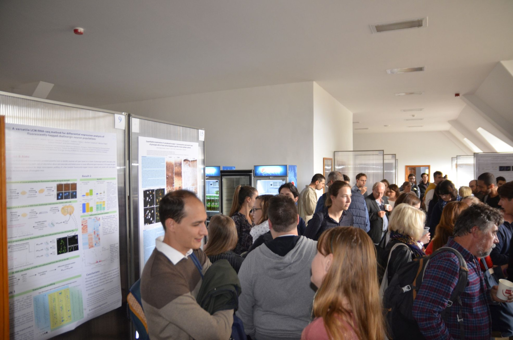 Ez a két nap kemény munka volt. Az első napon 21 előadást tartottunk 3 blokkban, a másodikon már csak nyolcat, de azt egyben, „egy fenékkel”. Az előadások közé a rövid szünetek mellett egy-egy hosszabb szünetben mindkét nap beszúrtak a szervezők egy poszter bemutató szekciót. Itt az előadóterem előtt sütizve, kávézva beszélhetik meg a kutatók a tablókon lógó, a kutatásokat bemutató poszterek előtt az előadásokhoz kapcsolódó részleteket. Ugye míg az előadások rövidek, és mindenki végighallgatja az összeset, a poszterek egy jóval célzottam és nyugalmasabb forma, hiszen mindenki ahhoz a poszterhez megy amelyik érdekli és addig beszélget a munkáját bemutató kutatóval ameddig szeretne. Kicsit olyan, mint amikor az ember piacozik. Jár körbe, nézegeti az árut és ahol valami jó vétel ígérkezik ott megáll és hosszasan beszélget a portékáját árulóval.