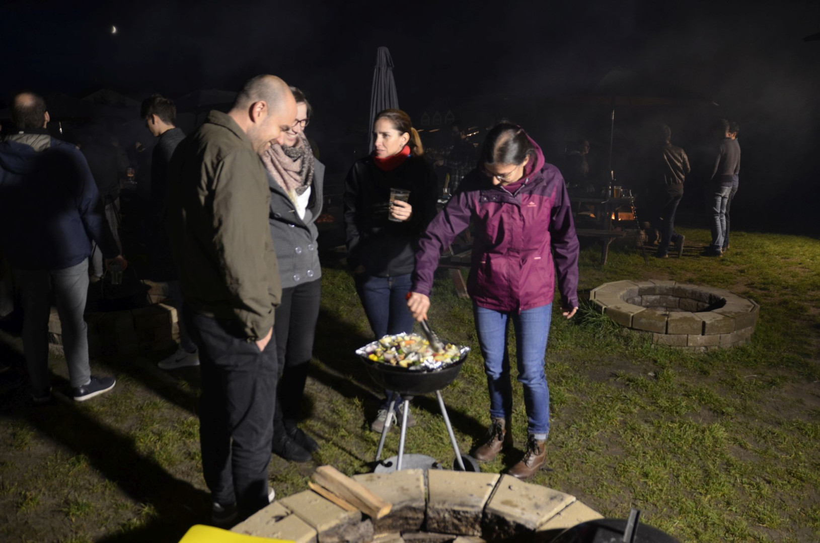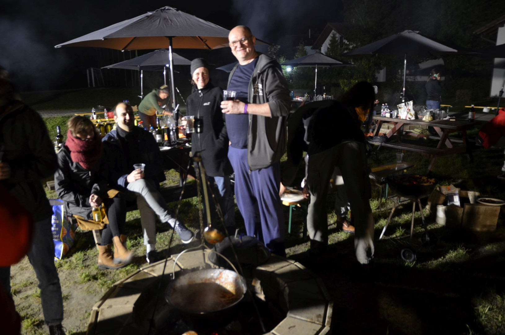 A kemény munka után persze pihenni is kell. De a „brain storming” a terített asztal és a csocsó mellett is tovább folyt. A kreativitás zaját itt már a gátlásokat félretoló etilalkohol is növelte sör és bor formájában. Az egyik esti program főzőverseny volt. A kutatócsoportokból összeállt főzőcsapatok bográcsban mutatták meg mit tudnak. Az adott forma miatt pörkölt variációk készültek.